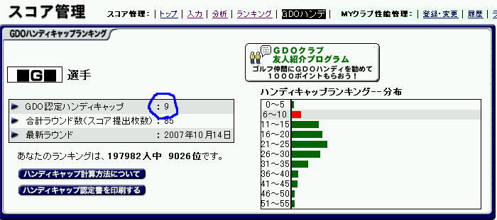 目標にしていた、GDOでのハンデキャップ、シングル入り達成!!! \( ̄▽ ̄o)/
