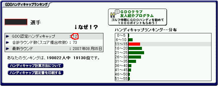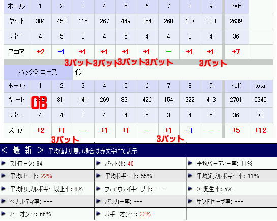 上記のスコアーを入力して、「あー最近スコアー悪いなぁ・・・」なんてぼやいてたら・・